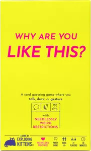 Your goal in Why Are You Like This? is to get your team to guess as many secret words as possible before the timer runs out. To do this you can either talk, draw, or gesture...but there's a catch! Each card also comes with an added twist to make your job a little harder: gesturing while spinning in a circle, drawing with your forehead on the table, and so on.